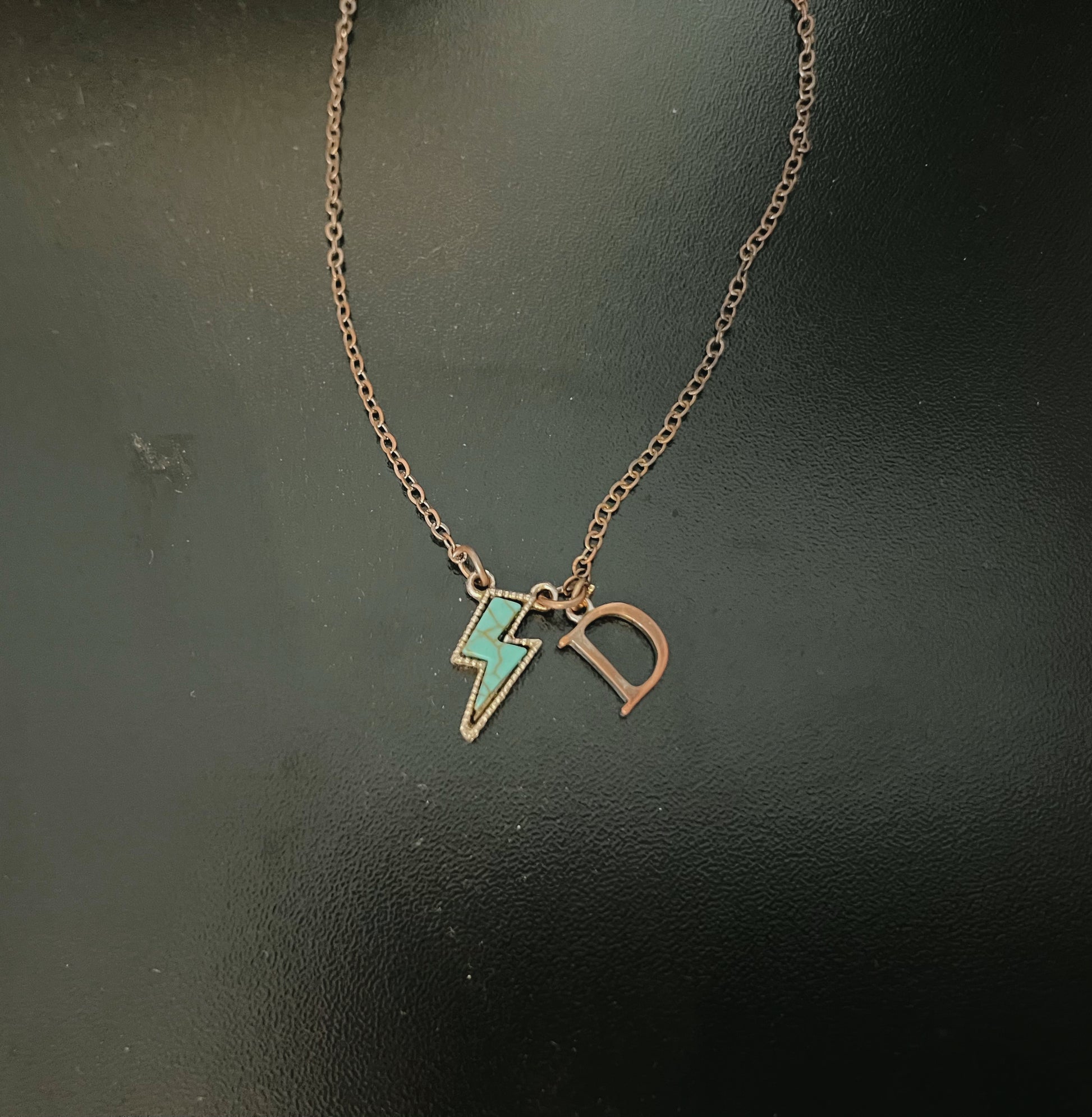 ⚡ Lightning Bolt + Initial Necklace – Western Boho Style
