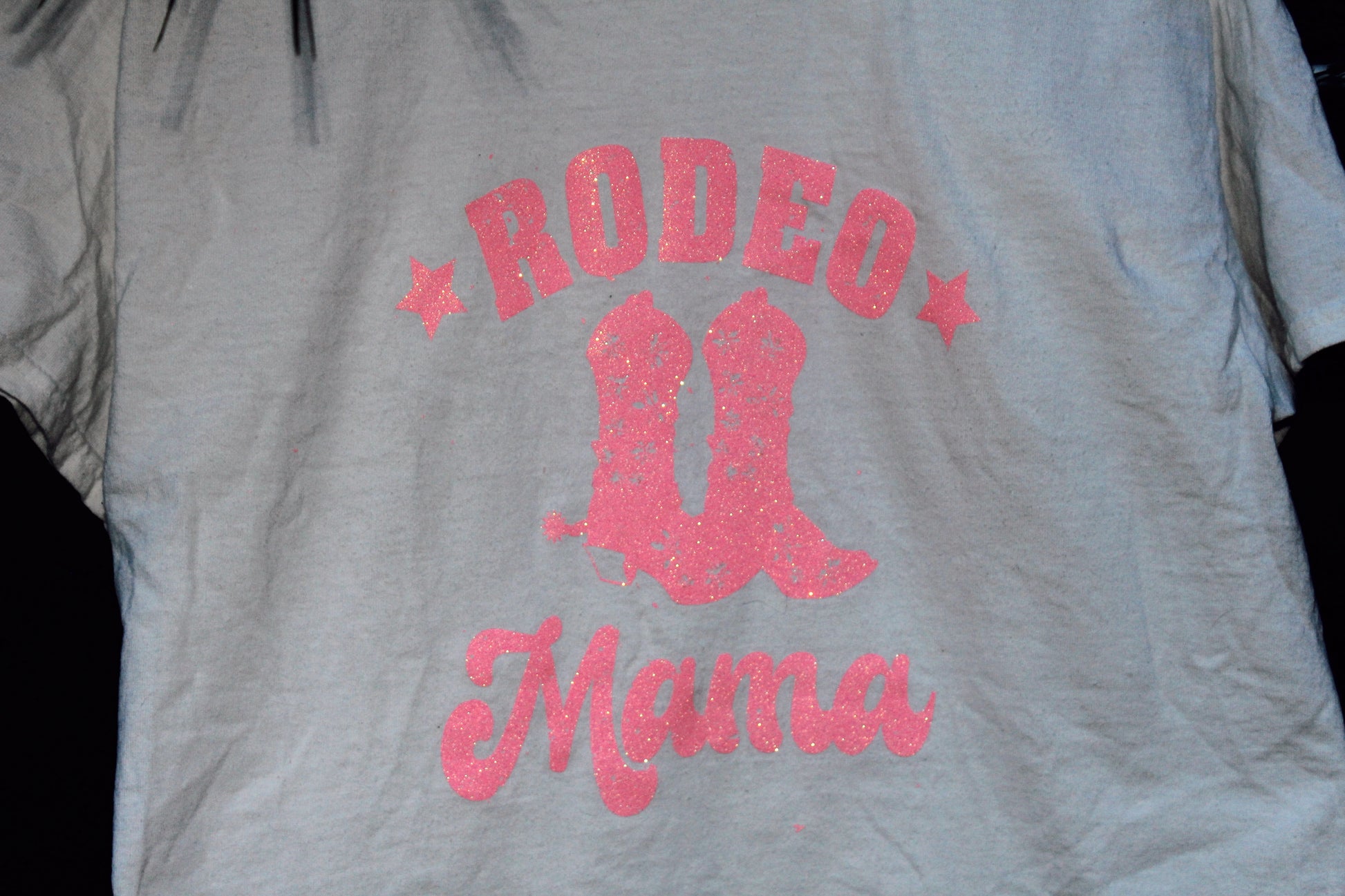 Rodeo Mama: Features a soft pink glitter design with classic cowgirl boots — made for the strong, sassy, and sweet mama who keeps the ranch (or house) running.
